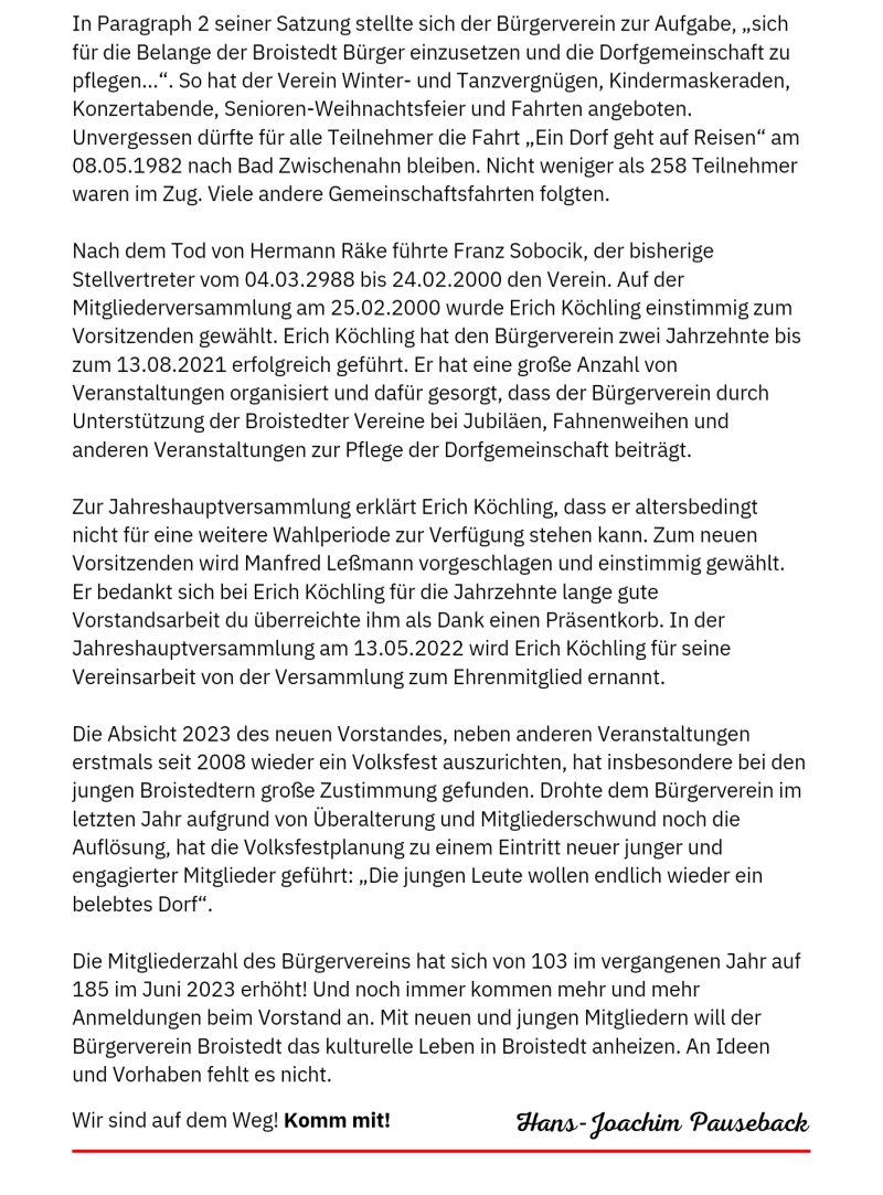 Wechsel in der Führung des Bürgervereins Broistedt und viel Stabilität im Vorstand